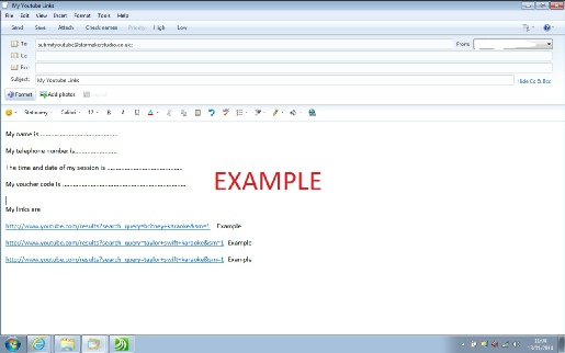 Clicking this link will open your own email account. If this link fails to work. Please open your own email account manually and send your links to submityoutube@starmakerstudio.co.uk